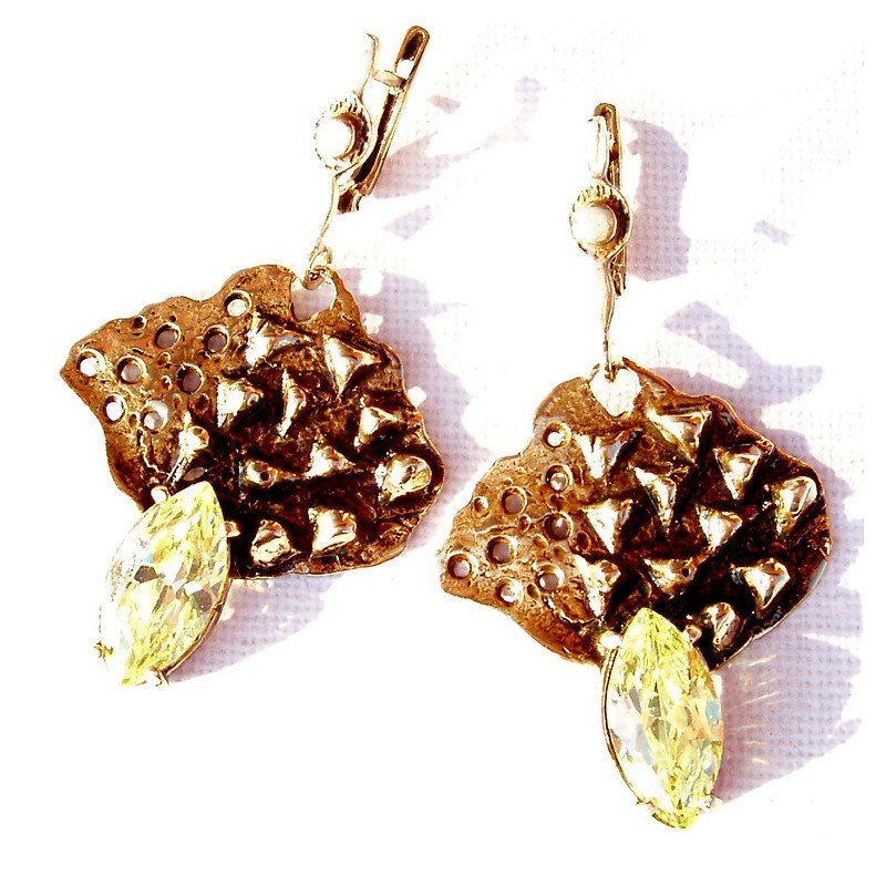 Nuostabūs žalvariniai auskarai su geltonu cirkoniu.